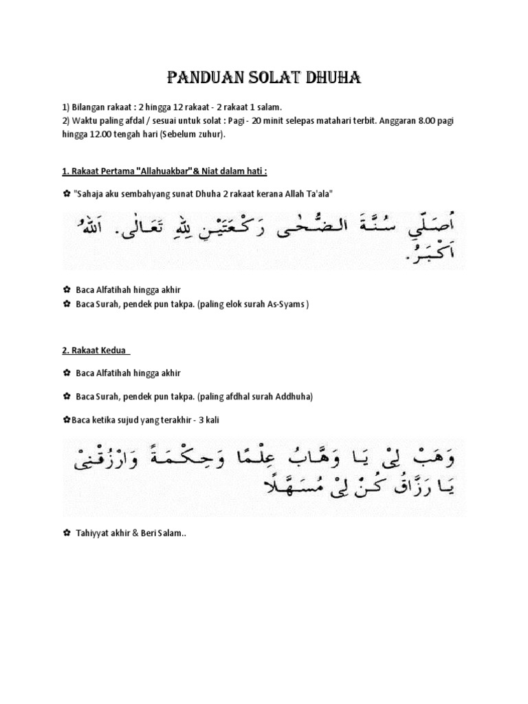 Merutinkan shalat dhuha menjadikan seseorang dicatat sebagai orang-orang yang. Iaitu sekitar 20-30 minit selepas terbit matahari. Cara Solat Beserta Doa Dhuha.